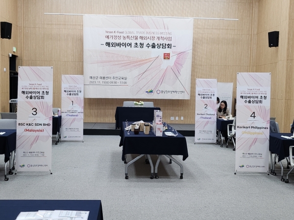이번 수출상담회에는 예가정성 인증제품 생산 참가기업 10개사가 모두 참여해 28건의 상담을 진행했으며 수출 상담액 347만달러, 업무협약 4건, 260만달러를 체결하는 성과를 거뒀고 태국, 말레이시아, 필리핀 바이어를 통해 신규 해외시장 개척 관련 판로 확대 가능성을 긍정적으로 확인했다.