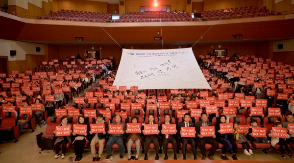 시는 각종 축제는 물론 논산 SNS 공식 페이지를 통해 2,137명의 의견과 댓글을 모았으며 이를 카드섹션 메시지로 표현해 아동학대 예방의 날을 기념했다.