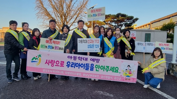 이번 캠페인은 금산경찰서 충남남부아동보호전문기관, 미향로터리클럽, 중앙초등학교녹색어머니회 등 유관 기관·단체와 함께 했다.