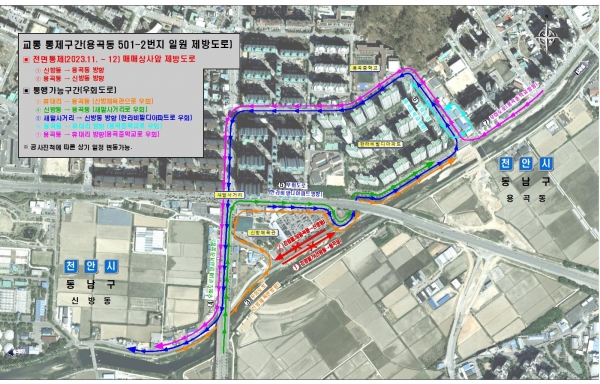 통제 구간은 남천안 자동차 매매단지 일대 용곡동 499-4번지~546-13번지 구간이다.