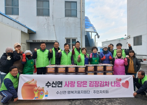 안인기 위원장은 “어려운 이웃들을 위해 함께 김장하니 더욱 뜻있고 보람차다”며 “주민 안녕과 지역 발전에 힘쓰는 주민자치회 활동으로 수신면의 복지 질 향상을 선도하겠다”고 전했다.