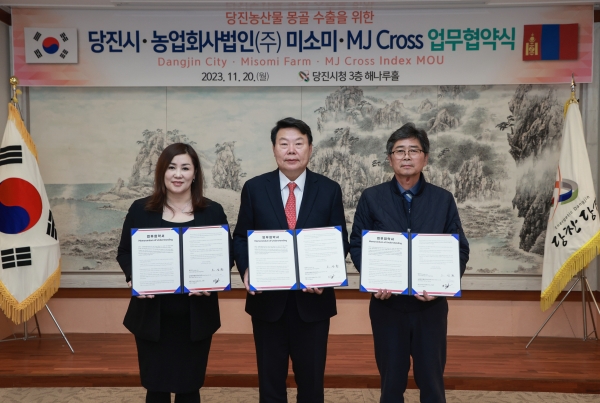 [Ytv영상스토리] 당진시와 농업회사법인미소미, 몽골 MJ Cross사가 20일 당진시청 해나루 홀에서 당진특화‘아미쌀’과 당진농산물 몽골 수출 확대를 위한 업무협약을 가졌다.