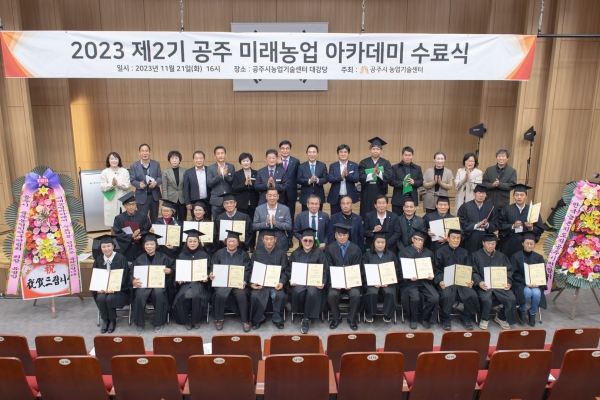 공주미래농업 아카데미 과정은 공주미래농업 발전을 이끌어 갈 농업리더를 육성하기 위해 마련된 것으로 이날 과정을 이수한 21명이 수료증을 받았다.