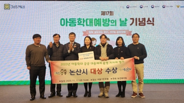 보건복지부 주관 ‘2023년 아동학대 공공 대응체계 운영 평가’에서 229개 기초지방자치단체 중 가장 높은 평가를 받고 영예의 대상을 수상했다.(사진=논산시)