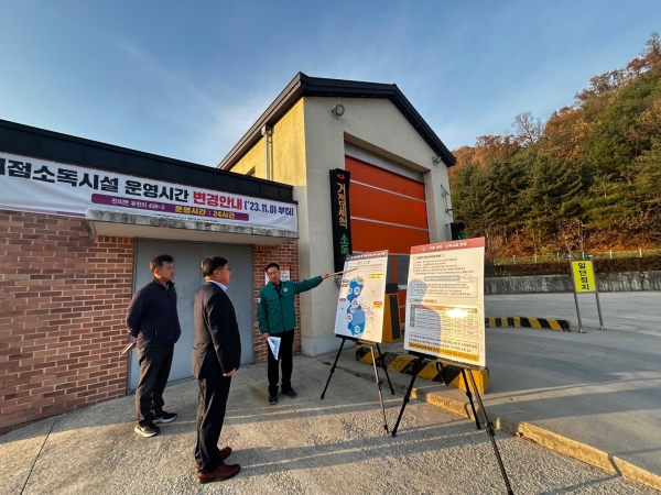 [Ytv영상스토리] 이승원 세종특별자치시 경제부시장이 지난 22일 전의면 거점소독시설을 방문해 축산차량 소독과 가축전염병 방역 상황을 점검했다.