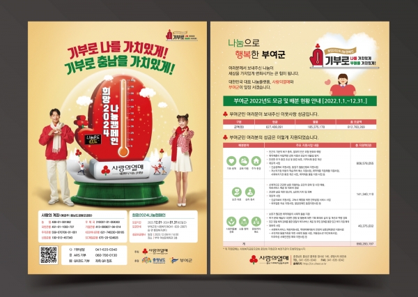 [Ytv영상스토리] 부여군은 연말연시 어려운 이웃돕기 모금운동 ‘희망 2024 나눔캠페인’을 다음달 1일부터 2024년 1월 31일까지 62일 동안 전개한다.