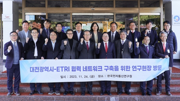 24일 대덕특구 정부출연연구기관 중 13번째로 한국전자통신연구원을 방문하고 기관 간 협력 방안을 논의한 후에 반도체 주요 시설을 둘러봤다.(사진=대전시)