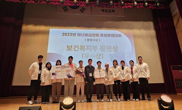 23일부터 이틀간 충남 천안에 소재한 재능교육연수원에서 열린 ‘2023년 재난응급의료 종합훈련대회’에서 보건복지부장관상을 수상하는 영광을 안았다.(사진=공주시)