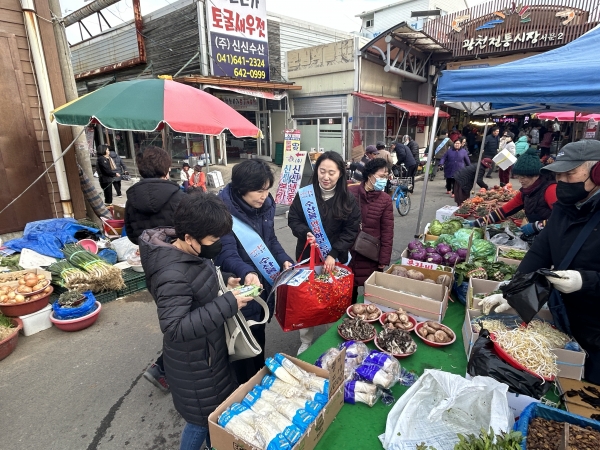 이에 홍성군은 시장을 찾은 방문객들을 대상으로 해양수산과와 광천읍행정복지센터 직원 15명이 홍보물품과 홍보 전단지를 배부하며 우리 수산물·수산식품의 안전성을 홍보하는 캠페인을 진행했다.