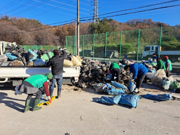 부강면 새마을협의회(회장 원광회·송미자)와 세종동부농협이 지난 25일 영농폐기물 집중 수거 환경정화 활동을 펼쳤다.(사진=세종시)