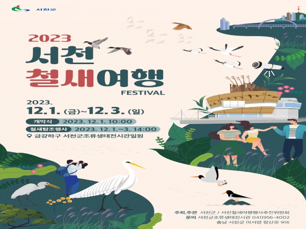 오는 1일 개막식을 시작으로 3일간 서천조류생태전시관 일원에서 진행되는 서천철새여행 페스티벌은 국립생태원이 참여하는 것을 비롯해 15개 체험 부스가 운영되며 철새와 관련된 다채로운 체험 및 학습 프로그램이 제공된다.