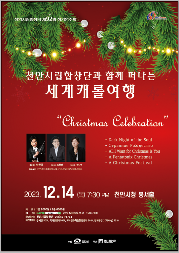 천안시립합창단은 12월 14일 천안시청 봉서홀에서 임한귀 예술감독의 지휘로 제92회 정기공연 ‘세계캐롤여행’을 개최한다.