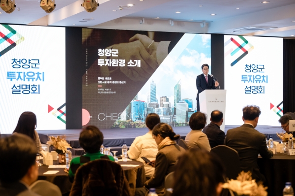 군은 지난 29일과 30일 이틀간 서울 구로구 엘컨벤션에서 기업 경영자들을 대상으로 청양지역 산업단지에 대한 투자가치와 전망을 소개하는 투자유치 설명회를 개최했다.