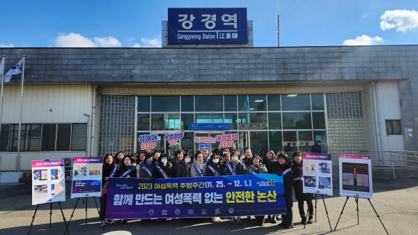 특히 강경역 이용객, 인근 주민을 대상으로 폭력의 유형과 대처요령을 알렸으며 피해자 지원기관을 안내하는 홍보물 배부, 현수막·피켓 행진 등에 나서기도 했다.