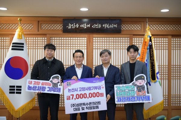 [Ytv영상스토리] ㈜성은특수콘크리트 임직원들이 논산시로 ‘고향사랑기부금’ 700만원을 기증했다.