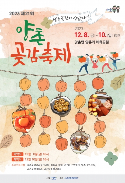 논산시의 달콤한 연말 분위기를 상징하는 ‘양촌곶감축제’, 올해 축제에는 어떠한 프로그램들이 마련되어 있는지 살펴보고자 한다.