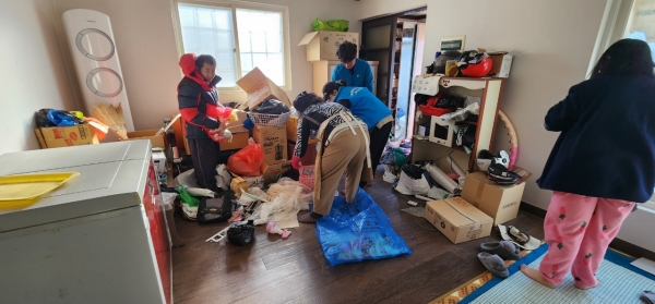 대상 가구의 4인이 모두 장애인으로 실내 청소를 하지 못해 집안 곳곳에 쓰레기가 쌓여있고 비위생적인 환경으로 지내고 있었으며 마당 곳곳에는 폐지 및 각종 폐비닐 등이 쌓여 있었다.