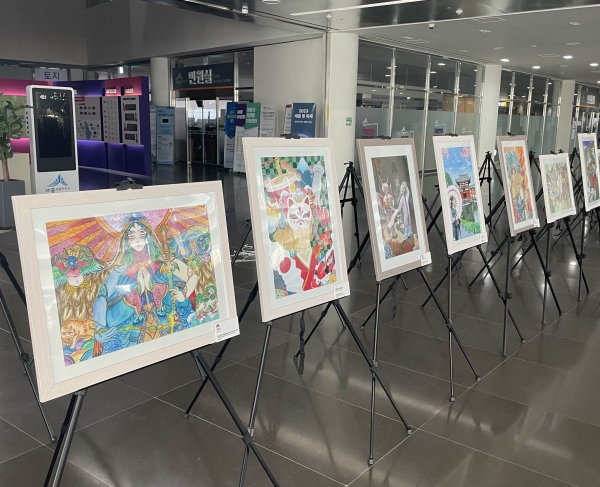 [Ytv영상스토리] 한국과 중국, 일본, 몽골, 러시아 등 동북아 지역 청소년들이 자국의 문화와 자연을 그려낸 그림과 포스터를 관람할 수 있는 전시회가 세종시청 1층 로비에서 열린다.