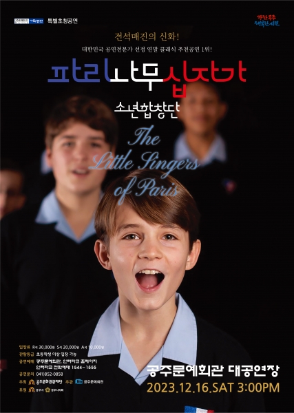1971년 첫 내한 이래 50년 동안 전석 매진을 기록하며 한국 팬들의 뜨거운 사랑을 받고있는 ‘파리나무십자가 소년합창단’이 오는 16일 공주를 찾는다.