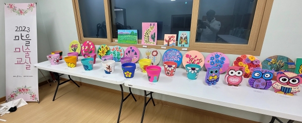 이날 작품을 전시한 어르신들은 지난 5월부터 11월까지 생활미술협회가 주관하고 군이 후원한 ‘찾아가는 미술 교실’에서 주 1회씩 총 30회에 걸쳐 대중미술 기법을 활용한 그림 그리기를 배웠다.