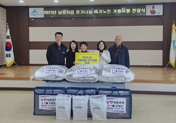 이창원 남양유업 세종공장장은 “올해 추위가 일찍 시작돼 혼자 사는 어르신들의 겨울나기가 걱정된다”며 “우리 임직원들의 이웃을 위한 마음이 잘 전달돼 어르신들이 온정을 느낄 수 있기를 바란다”고 말했다.