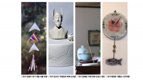 개발된 상품은 작가 강설아의 ‘유구 색동 괴불 모빌’ 작가 임수민의 ‘무령왕과 백제 오르골’ 작가 윤혜원의 ‘무령 한방 인센스 세트’ 작가 팽정화의 ‘계룡산 시간여행’이다.