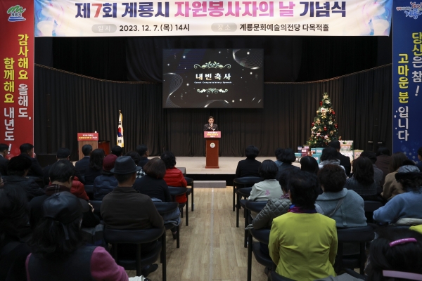 7일 계룡문화예술의전당 다목적홀에서 ‘제7회 계룡시 자원봉사자의 날’ 기념식을 개최했다.(사진=계룡시)