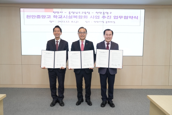 천안시는 지난 8일 충청남도교육청, 천안중앙고와 ‘천안중앙고등학교 학교시설복합화 사업 추진을 위한 업무협약’을 체결했다.