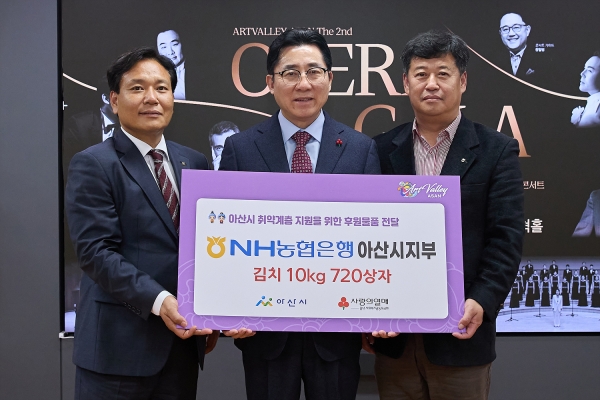 신진식 NH농협은행 지부장은 “취약계층 분들이 김치와 함께 맛있는 식사를 하시면서 따뜻한 연말을 보내셨으면 한다”며 “아산시와 협력해 지역사회 어려운 이웃들에게 힘이 될 수 있도록 더욱 노력하겠다”고 전했다.
