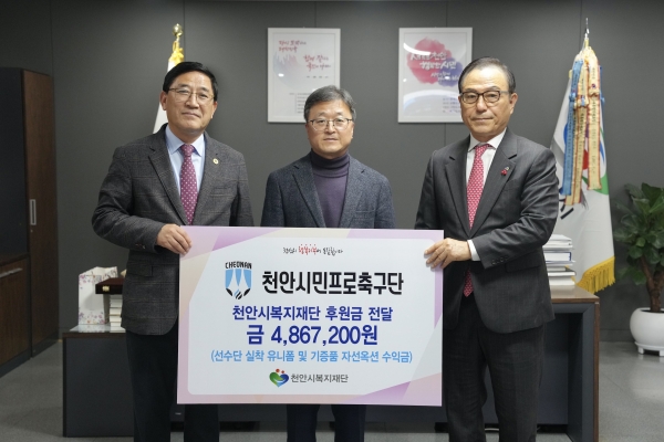 [Ytv영상스토리] 천안시복지재단은 지난 11일 천안시민프로축구단이 천안지역 취약계층 지원을 위해 후원금 486만7,200원을 전달했다고 밝혔다.