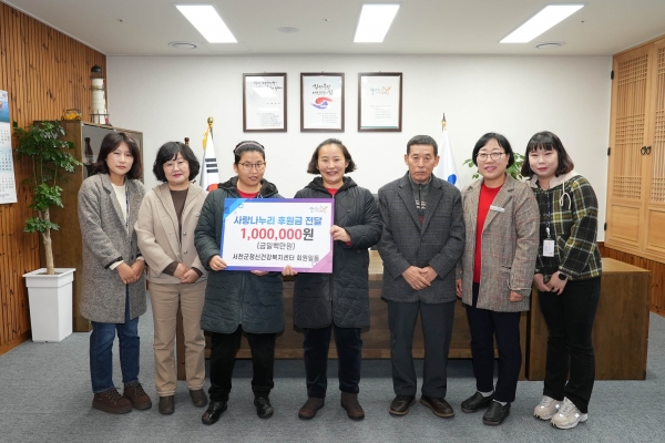 [Ytv영상스토리] 서천군 정신건강복지센터가 2023년 직업 재활프로그램 작품 전시 및 프리마켓 ‘미운 오리날다’를 통해 얻은 수익금 100만원을 사랑나누리에 기탁했다.
