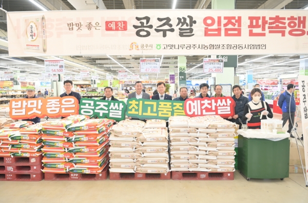 시는 이날 최원철 공주시장과 박혜성 ㈜농협유통 세종충남지사장 등이 참여한 가운데 공주쌀 판로확보를 위한 업무협약과 판촉 행사를 열고 공주쌀의 유통 활성화와 판매촉진, 농업인 소득 증대를 도모하기로 했다.