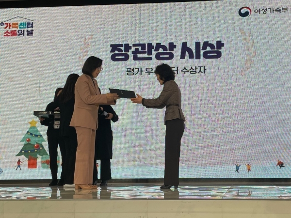 센터는 전국 가족센터·건강가정지원센터·다문화가족지원센터를 대상으로 2020년부터 2022년까지 3년간 추진한 센터 운영 평가에서 231개 센터 중 우수센터로 선정돼 여성가족부 장관상을 수상했다.