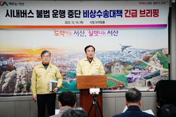 브리핑 서두에서 김 국장은 유일한 시내버스 업체인 서령버스의 운행중단과 관련해 “이는 시의 사전 승인 없이 임의로 운행을 중단한 것으로 명백한 불법 행위”고 규정했다.