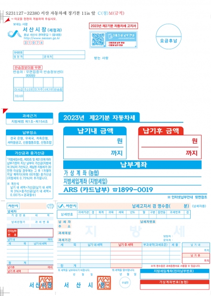서산시 관계자는 “납부 기한이 지나면 3%의 가산금 부담은 물론 번호판영치, 재산 압류 등 각종 불이익을 받게 되므로 납부 기한 내에 납부해 주시길 바란다”고 밝혔다.