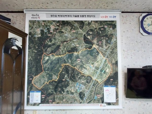 맞춤형 종합지도는 행정리별 경계, 연속지적도, 지명, 도로명 등 마을 주요시설 정보를 최신 항공사진과 중첩해 제작했다.