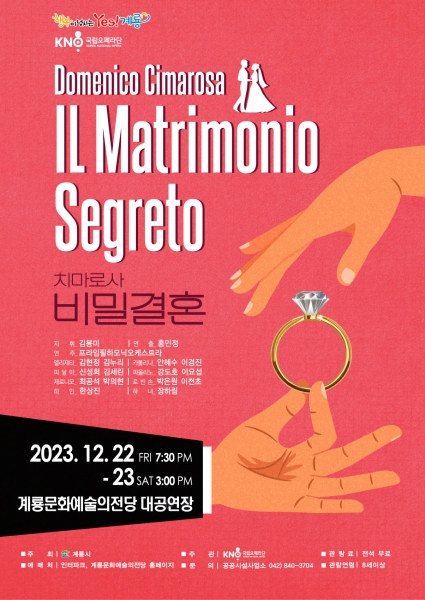 [Ytv영상스토리] 계룡시가 오는 22일과 23일 이틀에 걸쳐 계룡문화예술의전당 대공연장에서 국립오페라단의 치마로사 ‘비밀결혼’ 초청 공연을 개최한다고 밝혔다.