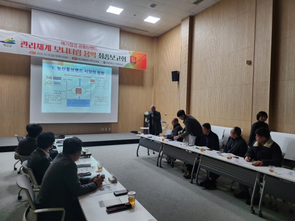 [Ytv영상스토리] 예산군은 예산해봄센터 주민교육실에서 농특산물 유통·마케팅 활성화 사업 자문위원과 실무추진단 10명이 참석한 가운데 농특산물 공동브랜드인 예가정성 제품을 체계적으로 관리하기 위한 ‘예가정성 공동브랜드 관리체계 구축 모니터링 용역 최종보고회’를 개최했다고 19일 밝혔다.