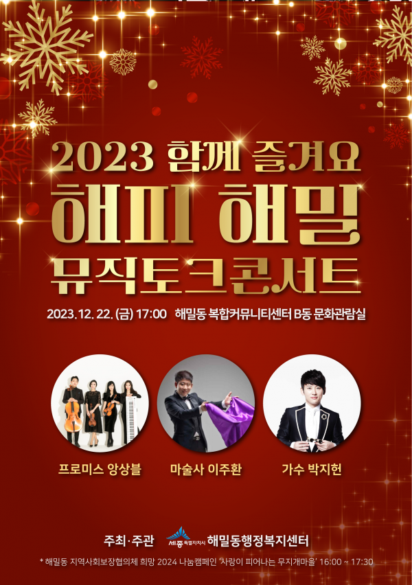 [Ytv영상스토리] 세종특별자치시 해밀동이 주민들을 위한 특별한 크리스마스 공연 ‘2023 함께 즐겨요 해피해밀 뮤직토크콘서트’를 준비했다.