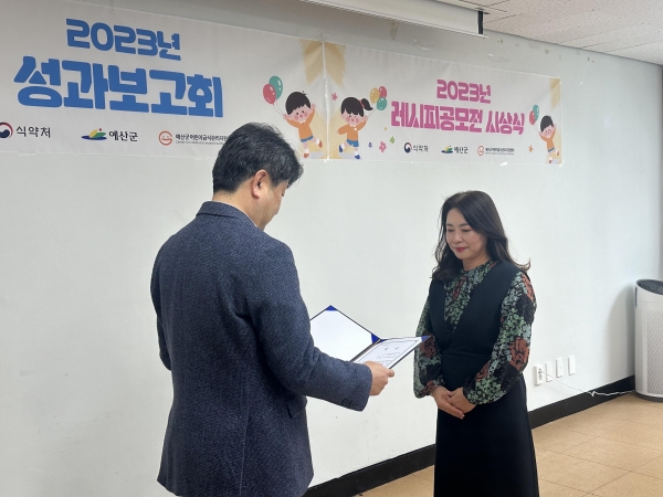 예산군 어린이급식관리지원센터, 2023 성과보고회 및 조리법 공모전 시상식 개최