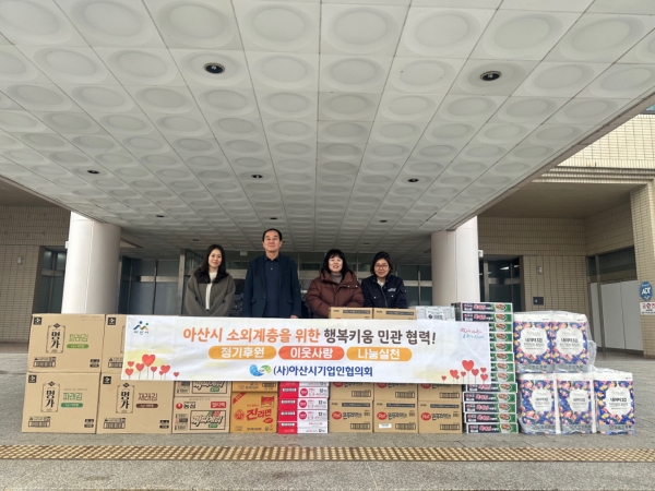김만섭 사회복지과장은 “추운 날씨에도 지역사회에 온기를 전하기 위해 항시 노력해 주시는 아산시기업인협의회와 회원사 분들에게 감사드린다”며 “전해 주신 정성과 후원 물품을 우리 주변의 어려운 이웃들에게 잘 전달해 드리겠다”고 밝혔다.