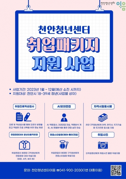 올해 2월부터 추진한 취업패키지 지원사업은 진로적성검사·AI면접 자격시험응시료 지원 취업 사진 촬영 면접 스타일링 면접정장 무료 대여 지원사업인 품격옷장 등으로 구성됐으며 총 2,637명이 지원 혜택을 받았다.