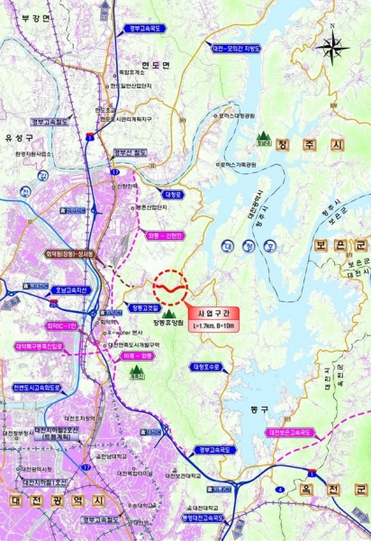 장동~이현 간 도로개설사업은 대덕구 회덕동과 신탄진동을 연결하는 총연장 1.7km의 구간으로 총사업비 248억원, 사업 기간은 2024년~2027년이다.