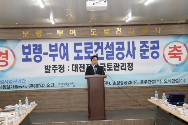 지난 27일에는 개통에 앞서 도로시설물을 최종 점검하고 보령-부여 도로건설공사 관계자들의 노고를 치하하기 위해 준공간담회가 열렸다.