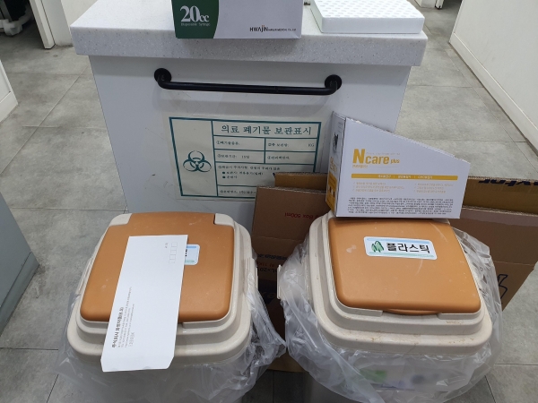폐기물관리법에 따르면 의료폐기물은 종류별로 전용 용기에 넣어 내용물이 새어 나오지 않게 보관해야 하며 보관 중인 폐기물의 종류·양 및 보관기간 등을 확인할 수 있는 표지판을 설치해야 한다.