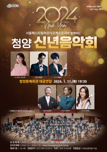 [Ytv영상스토리] 청양군이 1월 11일 저녁 7시 30분 청양문화예술회관 대공연장에서 2024년 희망의 새해를 여는 신년 음악회를 개최한다.