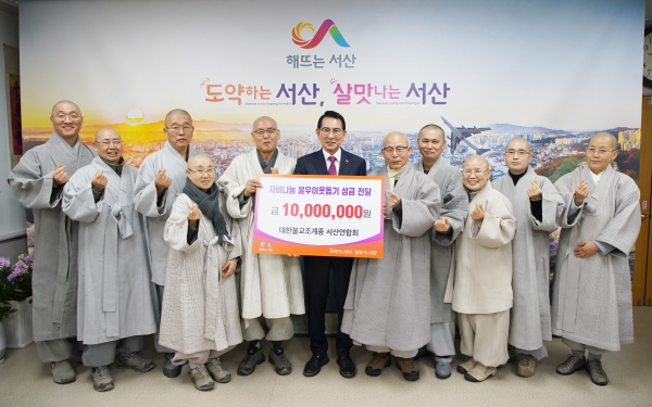 이완섭 서산시장은 “해마다 이웃사랑을 몸소 실천하는 대한불교조계종 서산연합회에 진심으로 감사하다 기탁된 성금은 꼭 필요한 곳에 전달하겠다”고 감사한 마음을 전했다.