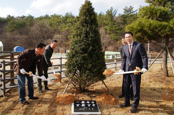 이 시장은 2024년 각종 대회와 파리올림픽 선발전에서의 선전을 기원하며 박종서 충남사격연맹회장, 정인승 서산시사격연맹회장, 박신영 서산시청 사격팀 감독 등과 함께 서산시종합사격장 입구에 기념식수를 하고 친필로 작성한‘一發命中 百發百中’ 표지석을 설치했다.