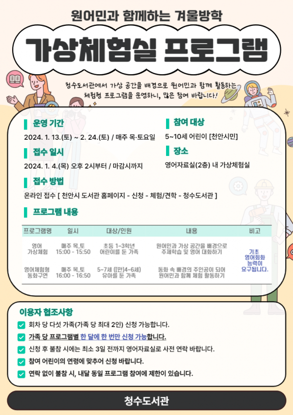 청수도서관, 원어민과 함께하는 겨울방학 가상체험실 운영