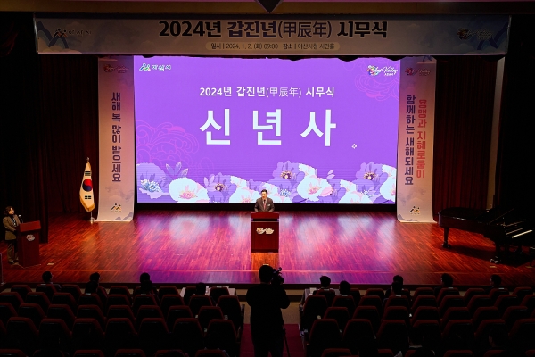 [Ytv영상스토리] 아산시는 2일 오전 9시 시민홀에서 2024년 갑진년 시무식을 열고 새해 시정의 시작을 알렸다.